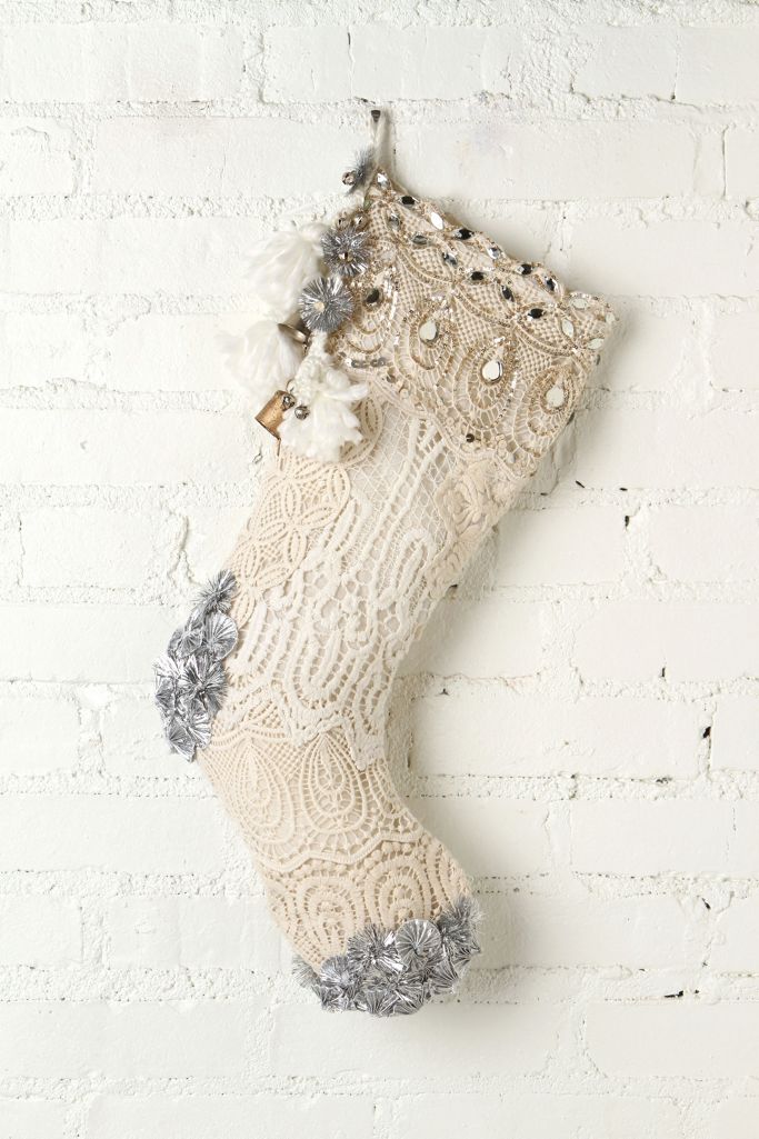 Stocking simply shabby chic 18 ivory velvet floral beaded rosette holiday decor. Nov 20 2012 free people fp one tinsel and lace stocking at free people clothing boutique. A fun and beautiful way to decorate your home for the holidays.
