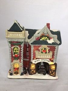 Ceramic Christmas Village House Fire Station Lighted Collectibles Villages Houses Ihslyrics Com