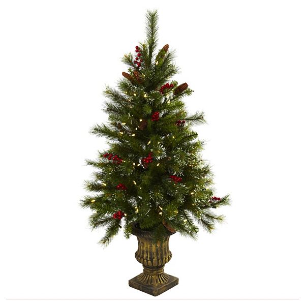Nearly Natural 4 Ft Potted Pre Lit Artificial Pinecone Christmas Tree Indoor