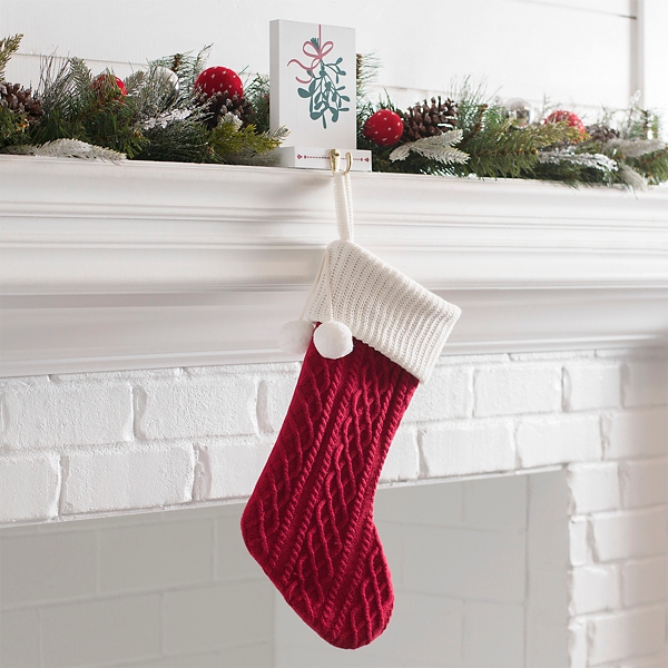 Amazon Com Red Cable Knit Christmas Stocking Home Kitchen