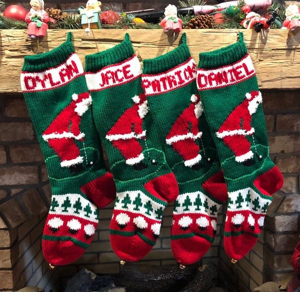 Hand Knit Christmas Stocking Golfing Santa Mama Jean S Christmas Stockings